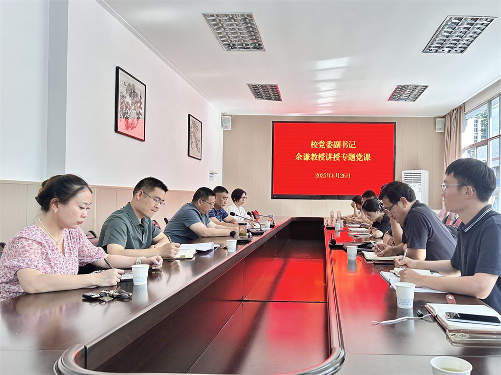6月26日,校党委副书记余谦以“深入贯彻中央八项规定精神 建设优良作风 推进学校事业高质量发展”为主题,为3003新葡官方网站教师党员讲授专题党课,3003新葡官方网站中心组全体成员、教师党员代表参加学习。